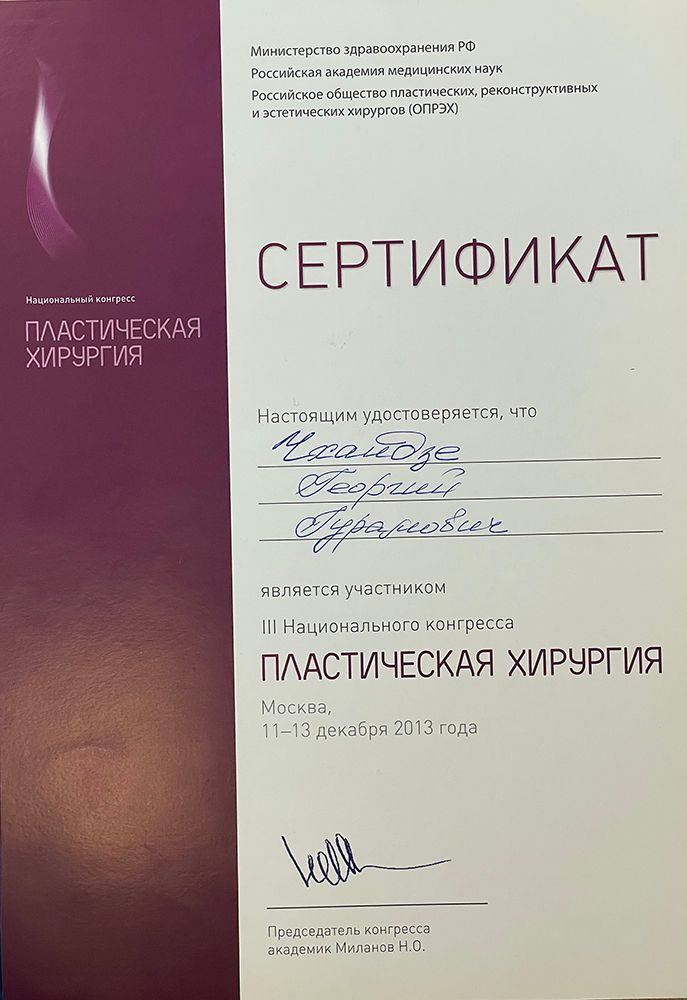 Профессиональная переподготовка на базе ГБОУ ДПО «РМАПО» Минздрава РФ по специальности «Пластическая хирургия»