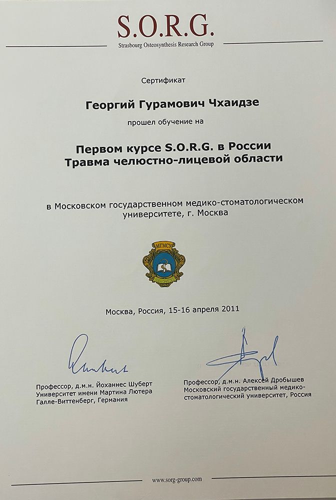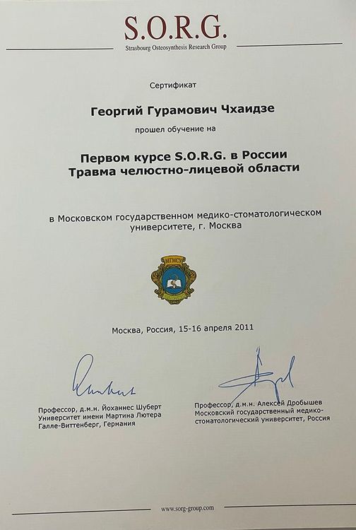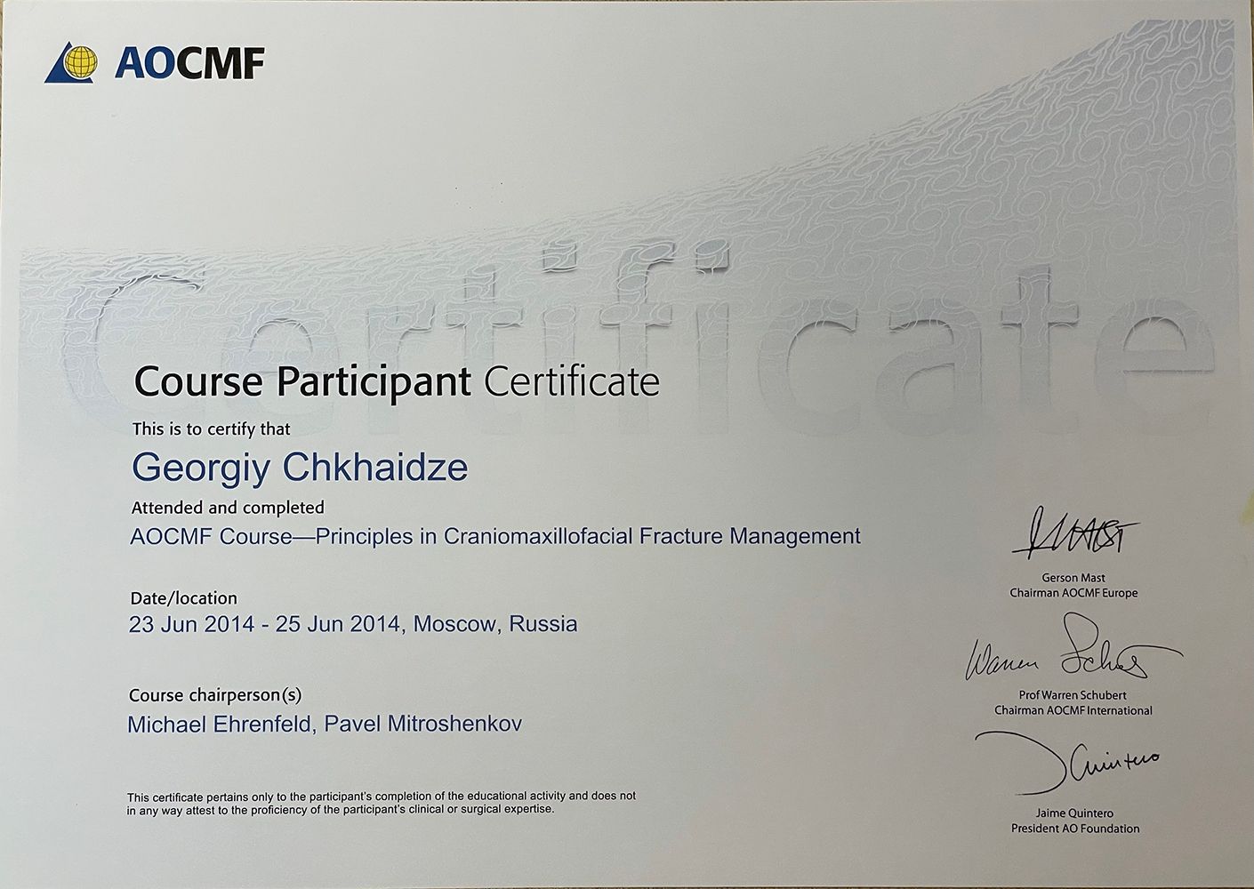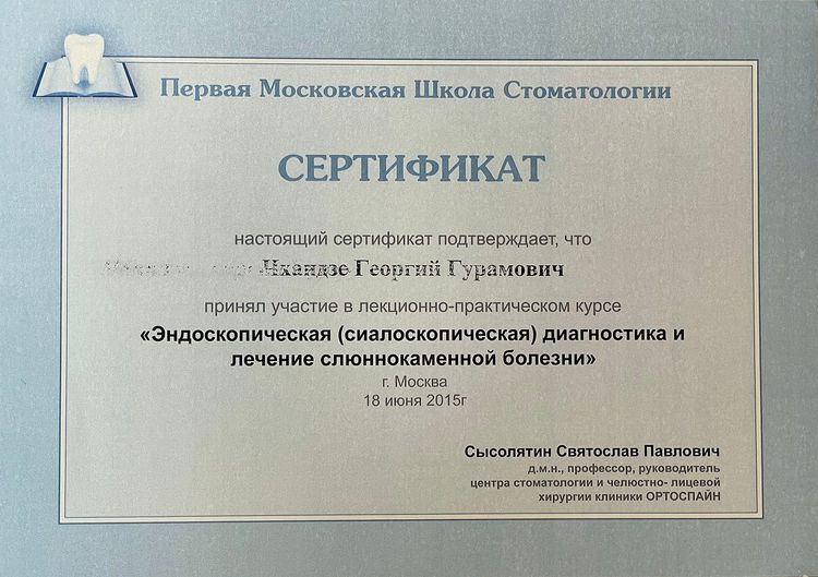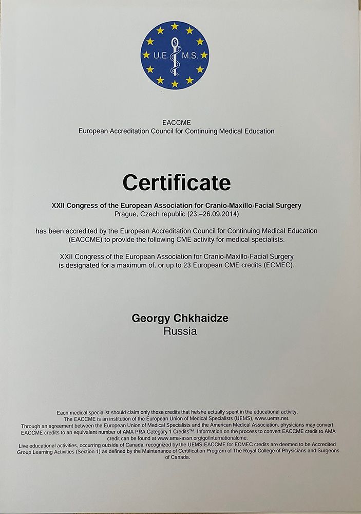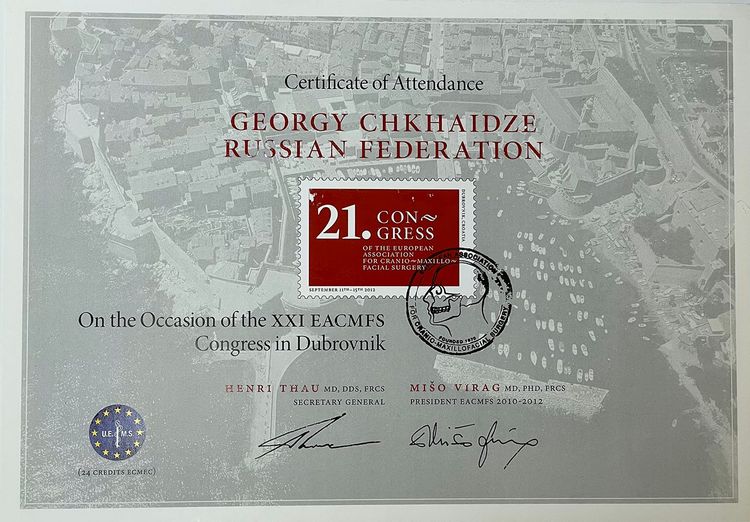 Кандидат медицинских наук, Член Европейской ассоциации челюстно-лицевых хирургов EACMFS