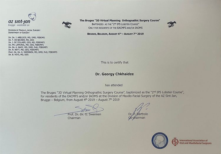 EACMFS and IAOMS «3D Virtual Planning Orthognatic Surgery Course». Brugge, Belgium