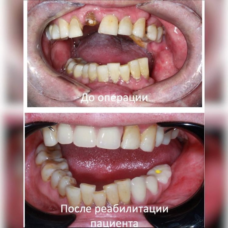 Позже установили дентальные импланты и ортопедическую конструкцию.