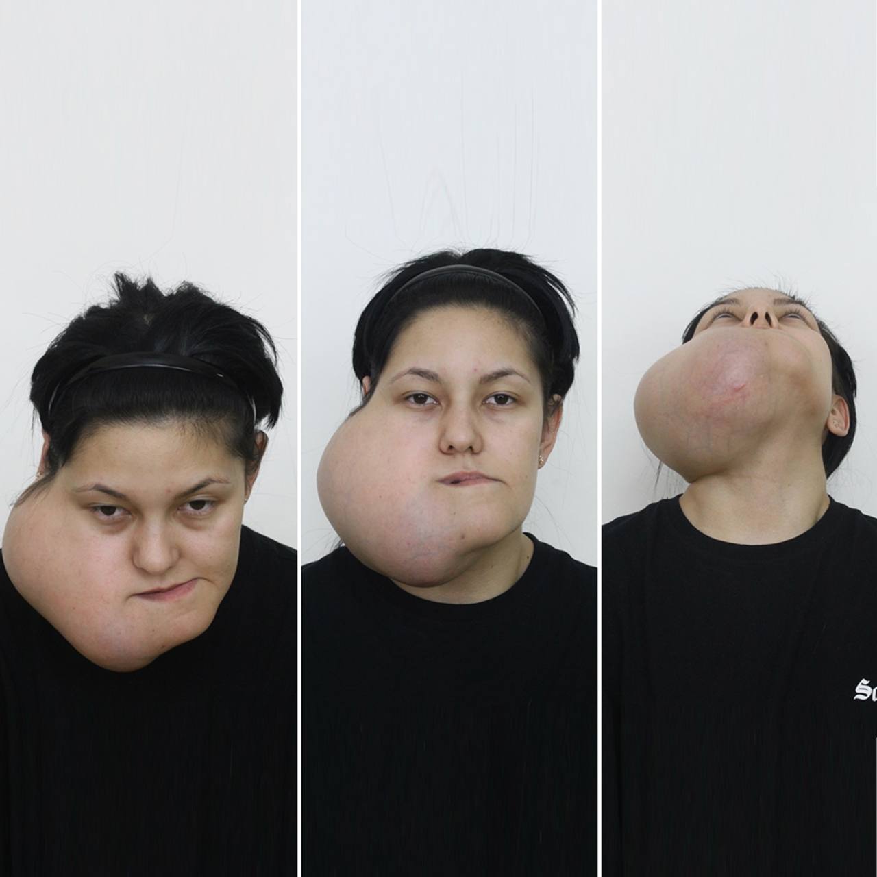 После тщательной подготовки и разработки плана хирургического вмешательства врачи ЦНИИС и ЧЛХ провели резекцию нижней челюсти в пределах здоровых тканей с экзартикуляцией справа и замещением образовавшегося дефекта силовой титановой конструкцией. Удалённый материал был направлен на патогистологическое исследование. Многочасовая операция была проведена успешно. Для наглядности демонстрируем фотографии 25-летней пациентки, выполненные через 6 месяцев после лечения.